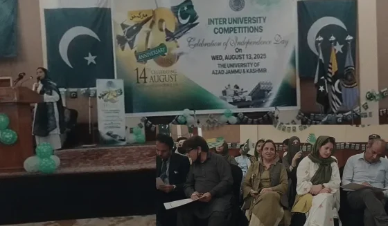 ڈیلی پرل ویو.پاکستان کے جشنِ آزادی کی مناسبت سے آزاد جموں و کشمیر یونیورسٹی کے زیرِاہتمام بین الجامعات انگریزی تقریری مقابلہ مقامی فائیو اسٹار ہوٹل میں منعقد ہوا، جس میں آزاد کشمیر کی تمام جامعات کے طلبہ نے شرکت کی۔…