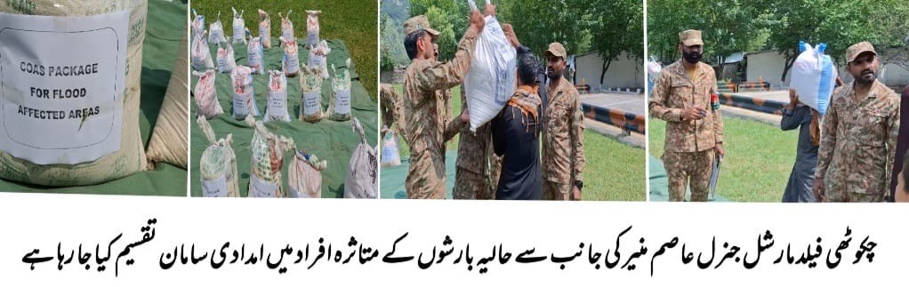 تفصیلات کے مطابق فیلڈ مارشل ویلفیئر پیکج کے تحت متاثرہ عوام کو اشیائے خورونوش اور ضروری سامان فراہم کیا گیا۔ مقامی افراد نے اس اقدام کو زبردست الفاظ میں خراج تحسین پیش کرتے ہوئے کہا کہ پاک فوج کی جانب سے ایسے فلاحی اقدامات نہ صرف فوری ریلیف فراہم کرتے ہیں بلکہ عوام اور فوج کے درمیان اعتماد کے رشتے کو مزید مضبوط بناتے ہیں۔