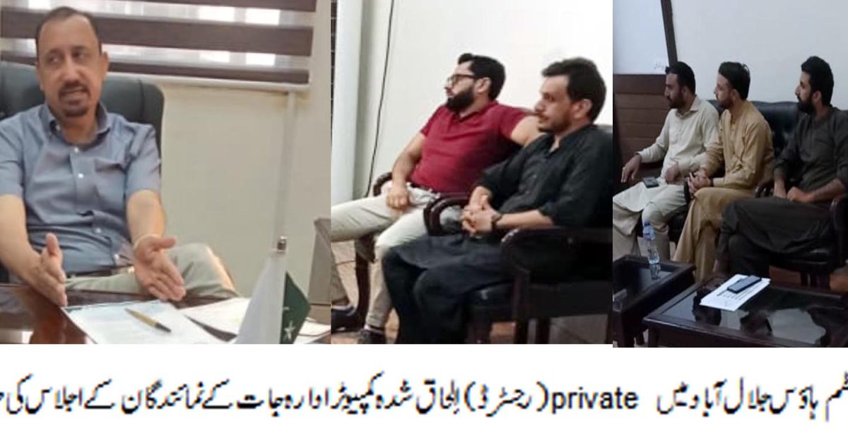 ڈیلی پرل ویو.آزاد جموں کشمیر ٹیکنیکل ایجوکیشن اینڈ ووکیشنل ٹریننگ اتھارٹی (AJKTEVTA) کے زیر انتظام نیو وزیر اعظم ہاؤس جلال آباد میں private (رجسٹرڈ) اِلحاق شدہ کمپیوٹر انسٹیٹیوٹس کے نمائندگان کا اہم اجلاس چیئرمین AJKTEVTA خواجہ محمد نعیم بسمل کے آفس چیمبر میں منعقد ہوا جس میں ڈائریکٹر اوپریشن/ پراجیکٹس انعم آصف عباسی، انچارج ٹریڈ ٹیسٹنگ بورڈ بینش رحمان، اسسٹنٹ ڈائریکٹر پبلسٹی اینڈ پریس وِنگ محمد اعجاز خان، اسسٹنٹ ڈائریکٹر اوپریشن محمد ساجد عباسی کے علاوہ private (رجسٹرڈ) اِلحاق شدہ کمپیوٹر انسٹیٹیوٹس کے نمائندگان کی کثیر تعداد میں شرکت۔ اس اہم میٹنگ میں CBT&A نظام تعلیم، اسیسمنٹ (formative اور summative) ادارہ جاتی NOC NAVTTC کی طرف سے فراہم کردہ پروگرام میں رجسٹرڈ کمپیوٹر ادارہ جات کی شمولیت، TTB کے زیر انتظام بر وقت امتحانات کا انعقاد اور سرٹیفکیٹس کی فراہمی پوسٹل سسٹم میں بہتری، مستحق افراد کے بچوں کے لئے فیسوں میں رعایت، ادارہ جات کی branches کھولنے کے لئے عدم اعتراض سرٹیفکیٹس کے اجراء کا طریقہ کار TEVTA کے سپانسر پروگرام میں مقامی private رجسٹرڈ اداروں کے سپرد کیے جانے اور داخلہ جات و دیگر سے متعلق فیس جمع کروانے کے سسٹم کو digitalize کرنے جیسے اہم امور زیرِکار آئے۔ اس میٹنگ میں private رجسٹرڈ اِلحاق شدہ ادارہ جات میں در پیش مسائل کا جائزہ لیا گیا۔ میٹنگ میں اہم مسائل پر تفصیلی گفتگو کی گئی اور انکے مؤثر حل تجویز کی گئے جنہیں مستقبل میں نافذ کیا جائے گا تا کہ تربیتی معیار کو مزید بہتر اور مضبوط بنایا جا سکے۔ private اداروں میں معیار کے مطابق ٹریننگ پروگرام کی تکمیل، ٹیسٹنگ و سرٹیفکیشن بہر صورت ٹریڈ ٹیسٹنگ بورڈ AJKTEVTA کی ہی قابل قبول ہو گی جس سے نوجوانوں کو قومی و بین الاقوامی مارکیٹ میں روزگار کے مواقعے بھی میسر آئیں گے