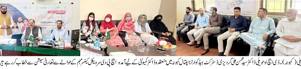 ڈیلی پرل ویو.ڈسٹرکٹ ہیڈ کوارٹر ہسپتال کہوٹہ میں زیر صدارت جانب ڈسٹرکٹ ہیلتھ آفیسر ضلع حویلی ڈاکٹر سید محسن علی گردیزی ڈاکٹرز کمیونٹی کے لے آمدہ ایچ پی وی سرویکل کینسر مہم کے حوالہ سے ایک تعارفی سیشن کا انعقاد کیا گیا۔ اس موقعہ پر ڈاکٹر تسکین احمد خان راٹھور میڈیکل سپرنٹینڈنٹ ڈی ایچ کیو ہسپتال کہوٹہ بھی موجود تھے۔ میٹنگ میں ضلع بھر کے تمام ڈاکٹرز نے شرکت کی ۔ اس میٹنگ کا مقصد حکومت اور محکمہ صحت عامہ کا ڈبلیو ایچ او کے ساتھ مل کر ایچ پی وی ویکسینیشن مہم کے بارے میں بتانا تھا جو کہ ایک اہم سنگ میل ہے جس میں پہلی بار آزاد کشمیر میں 9 سے 14 سال کی بچیوں کو سروائیکل کینسر ( بچہ دانی کے ممکنہ کینسر ) سے بچاؤ کی ویکسین مورخہ 15 سے 27 ستمبر 2025 کے دوران لگائی جائے گی۔ میٹینگ میں اس ویکسین ، بیماری اور اس کے ممکنہ بچاؤ ، حویلی کے اندر اس سے متعلقہ فیمیل اسٹاف کی ٹرینگ اور انتظامات کا مفصل جائزہ جناب عبدالرحمن صاحب ای ڈی ٹریننگ ای پی آئی نے پیش کیا ۔اس موقع ڈاکٹر مریم مقبول کیانی، میڈیکل اسپیشلسٹ و AEFIفوکل پرسن برائےHPV vaccine اور فاروق میر صاحب اور دیگر اسٹاف بھی موجود تھے۔ ڈی ایچ او حویلی ڈاکٹر سید محسن علی گردیزی صاحب نے اس موقع پر کہا کہ Cervical Cancer کی شرع اس وقت بشمول پاکستان پوری دنیا میں انتہائی تیزی سے پھیل رہی ہے ۔ یہ کینسر ایک وائرس سے جنم لیتا جس کو پاپیلوما وائرس کہا جاتا ۔ یہ اس کینسر سے بچاؤ کی اپنی نوعیت کی پہلی ویکسین ہے جس سے اس کا بچاؤ ممکن ہو سکے گا۔ پوری دنیا اور مسلم ممالک میں یہ ویکسین لگائی جا چکی ۔ انہوں نے مزید کہا کہ پاکستان ساؤتھ ایشیا میں اس کینسر کا سب سے زیادہ شکار ہونے کا ملک بن گیا ہے ۔ کیونکہ سوشل نارمز اور اسکریننگ نہ ہونے کی وجہ سے یہ لیٹ تشخیص ہو رہا جب ویکسین اور ادویات بھی اثر نہیں کرتیں ۔ اس وقت پاکستان میں سالانہ 5000 سے زائد کیسز رپورٹ ہوئے اور 3000 سے زائد اموات اس کینسر کی وجہ سے رپورٹ ہو چکیں ہیں۔ انہوں نے کہا کہ آئیں تمام والدین اس موقع سے بھرپور فایدہ اٹھائیں اور بروقت اپنی بچیوں کو ویکسینز لگا کر ان کا ایک صحت مند زندگی کا موقع فراہم کریں ۔ انہوں نے مزید کہا کہ ضلع حویلی میں یہ ویکسین تربیت یافتہ فیمیل ویکسینٹرز اسکولز اور کمیونٹی سنٹرز میں لگائیں گی ، اس کے سائڈ ایفیکٹس دوسری روزمرہ کی ویکسینز کی طرح نہ ہونے کے برابر ہیں ۔ جناب ڈی ایچ او صاحب نے عوام علاقہ سے اپیل کی ہے کہ آپ کا ہر ممکن تعاون آپ کی بچیوں کی ایک صحت مند زندگی کا ضامن ہوگا