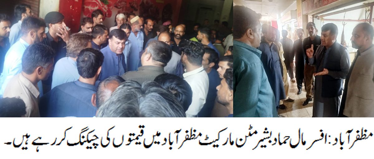 ڈیلی پرل ویو.افسر مال حماد بشیر نے ہمراہ پولیس نفری گراں فروشی کے خلاف کاروائی کرتے ہوئے پرائس لسٹ سے زائد قیمت پر مٹن مارکیٹ مظفرآباد میں گوشت فروخت کرنے کی بنا پر چھ قصابوں کو گرفتار کر لیا۔ گراں فروشوں کے خلاف ضلعی انتظامیہ کا کریک ڈاؤن جاری ہے عوام الناس کو مقرر کردہ انرخ سے زائد قیمت پر گوشت فروخت کرنے والے منافع خورں کے خلاف مطابق قانون سخت کاروائیاں عمل میں لائی جائیں گی۔