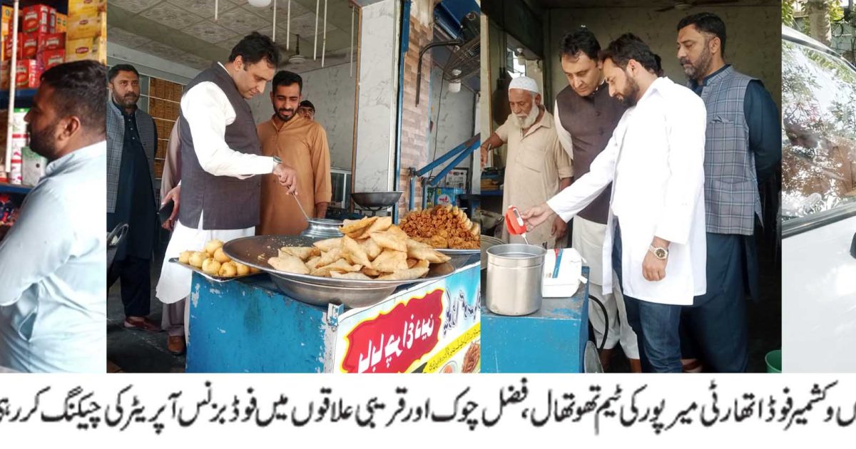 ڈیلی پرل ویو.آزاد جموں و کشمیر فوڈ اتھارٹی میرپور کی ٹیم نے تھوتھال، فضل چوک اور قریبی علاقوں میں فوڈ بزنس آپریٹرز بشمول بیکرز و مینو فیکچرنگ یونٹس،ریسٹورنٹس و سموسہ پکوڑا شاپس،دودھ فروش و جنرل اسٹورزکی اچانک چیکنگ کی۔کارروائی کے دوران غیر معیاری خوراک کی تیاری، غیر صاف برتنوں، گندے پانی، اور استعمال شدہ تیل کے استعمال پر متعدد خلاف ورزیاں پائی گئیں۔ دوران معائینہ، اشیاء خوردنوش لینے والی گاڑیوں کی پڑتال عمل میں لائی گئی۔کاروائی کے دوران خلاف ورزی کرنے والے دوکانداروں کے خلاف ایک لاکھ روپے کے جرمانے کیے گے جبکہ 06فوڈ یونٹس کو بہتری کے نوٹس جاری کیے گے اس طرح غیر معیار ی و استعمال شدہ 38لیٹر تیل کو تلف کیا گیا۔5لیٹر ناقص کیچپ ضبط کیا گیا۔20کلو غیر معیاری میٹھائی کو تلف کیا گیا۔ کاروائی میں ڈسٹرکٹ فوڈ کنٹرولر فوڈ سیفٹی آفیسر: عدنان علی نقوی،فوڈ اینالسٹ: محمد جلیل اسسٹنٹ فوڈ سیفٹی آفیسرز، آصف ریاض، شہریار خان نے حصہ لیا۔ ترجمان فوڈ اتھارٹی نے اس موقع پر کہا کہ ‘غیر معیاری اور گندے ماحول میں خوراک کی تیاری عوامی صحت کے لیے خطرناک ہے۔ فوڈ اتھارٹی صاف ستھری اور محفوظ خوراک کی فراہمی یقینی بنانے کے لیے روزانہ کی بنیاد پر ایسی کارروائیاں جاری رکھے گی۔ عوام سے اپیل ہے کہ اگر کسی جگہ ناقص خوراک، گندگی یا ملاوٹ دیکھیں تو فوری فوڈ اتھارٹی کو اس کی ہیلپ لائن 1280پر اطلاع دیں۔