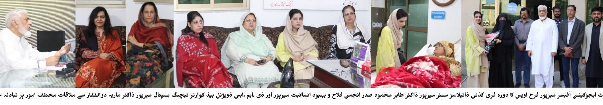 ڈیلی پرل ویو. ڈسٹرکٹ ایجوکیشن آفیسر میرپور فرخ اویس نے فری کڈنی ڈائیلاسز سنٹر، ڈویژنل ہیڈ کوارٹر ٹیچنگ ہسپتال میرپور کا تفصیلی دورہ کیا اور زیرِ علاج مریضوں کی عیادت کی۔ انہوں نے علاج معالجے کی فراہمی کے عمل، دستیاب سہولیات اور عملے کی کارکردگی کا جائزہ لیا۔ڈی ای او فرخ اویس نے اس موقع پر گفتگو کرتے ہوئے اس امر پر اطمینان کا اظہار کیا کہ فری کڈنی ڈائیلاسز سنٹر میرپور میں مریضوں کو جدید سہولیات کے ساتھ مفت علاج فراہم کیا جا رہا ہے، جو کہ انجمن فلاح و بہبودِ انسانیت میرپور کی قابلِ تحسین خدمات کا نتیجہ ہے۔اس موقع پر انہوں نے صدر انجمن فلاح و بہبودِ انسانیت ڈاکٹر طاہر محمود اور ڈی ایم ایس ڈویژنل ہیڈ کوارٹر ٹیچنگ ہسپتال میرپور ڈاکٹر ماریہ ذوالفقار سے خصوصی ملاقات بھی کی۔ ملاقات کے دوران فلاحی سرگرمیوں، عوام میں گردوں کے امراض سے متعلق آگاہی، اور تعلیمی اداروں میں صحت سے متعلق مہمات کے فروغ پر تفصیلی تبادلہ خیال کیا گیا۔ڈسٹرکٹ ایجوکیشن آفیسر فرخ اویس نے کہا کہ وہ عوام میں گردوں کے امراض کے بڑھتے ہوئے رجحان پر گہری تشویش رکھتے ہیں اور انجمن فلاح و بہبودِ انسانیت میرپور کی آگاہی مہم میں محکمہ تعلیم کی جانب سے بھرپور تعاون کی یقین دہانی کراتے ہیں۔ انہوں نے کہا کہ ضلع میرپور کے تمام تعلیمی ادارے ایسی مثبت مہمات میں ہر ممکن معاونت فراہم کریں گے تاکہ طلبہ اور والدین کو بروقت آگاہی حاصل ہو سکے۔دورے کے موقع پر خواتین ونگ کی انچارج عائشہ ملک، حفصہ باری، فرزانہ راجہ، ایڈمن آفیسر جہانگیر مغل، منیر عبدالماجد، وارڈ ماسٹر محمد اسحاق گورسی اور معروف صحافی آصف اقبال بھی موجود تھے۔فرخ اویس نے آخر میں اسپتال انتظامیہ اور فلاحی تنظیم کی ٹیم کو خراجِ تحسین پیش کرتے ہوئے کہا کہ ایسے ادارے معاشرتی فلاح و بہبود کے ستون ہیں، جن کی بدولت مستحق مریضوں کو زندگی کی نئی امید مل رہی ہے۔