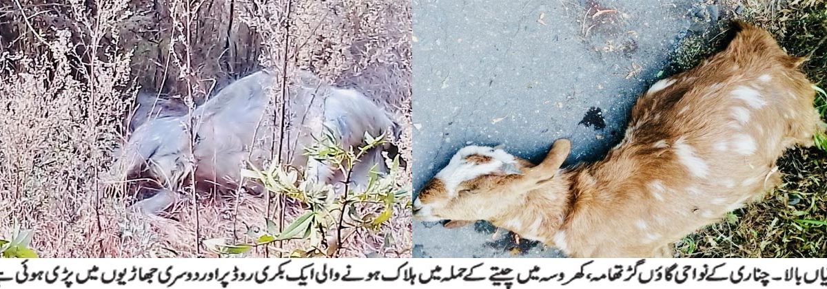 (ڈیلی پرل ویو)چناری کے نواحی گاؤں گڑتھامہ(محلہ کھروسہ) میں جنگلی چیتے نے آبادی میں گھس کر حملہ کر تے ہوئے تین قیمتی بکریاں ہلاک کر دیں،پورے علاقہ میں خوف و ہراس،لوگ گھروں کے اندر بند ہو کر رہ گئے،محکمہ وائلڈ لائف اور انتظامیہ ضلع بھر میں عوام کے جان و مال کو جنگلی جانوروں سے محفوظ بنانے کے بجائے خاموش تماشائی۔تفصیلات کے مطابق ایلمنٹری مدرس اکابر حنیف کیانی ولد محمد حنیف کیانی ساکن کھروسہ گڑتھامہ کی تین بکریوں کو چیتے نے حملہ کر کے ہلاک کردیا،جن میں سے دو بکریوں کی باقیات مل گئیں جبکہ تیسری بکری مکمل طور پر چیتے نے کھا لی،مقامی لوگوں نے بتایا کہ حملے کے وقت گلی میں بچے بھی کھیل رہے تھے،اگر بچے باہر موجود ہوتے تو کوئی بڑا سانحہ رونما ہو سکتا تھا۔اس صورت میں ذمہ دار کون ہوتا؟عوام نے ضلعی انتظامیہ اور متعلقہ محکموں کی خاموشی پر شدید سوالات اٹھاتے ہوئے کہ گزشتہ ایک ماہ سے جہلم ویلی کے مختلف دیہات میں چیتوں کے حملوں میں خوفناک حد تک اضافہ ہو چکا ہیاب تک لاکھوں روپے مالیت کے درجنوں مویشی ہلاک ہو چکے ہیں،مگر نہ محکمہ وائلڈ لائف حرکت میں آیا اور نہ ہی انتظامیہ نے کوئی حفاظتی اقدام اٹھایا۔عوام کے مطابق محکمہ کی لاپروائی اور ضلعی انتظامیہ کی مسلسل خاموشی کے باعث لوگوں کا شام کے بعد گھروں سے باہر نکلنا محال ہو چکا ہے۔رواں سال گاؤں کھروسہ میں ہی چیتے کے ایک اور حملے میں ایک بچھڑا اور تین بکریاں بھی ہلاک ہو چکی ہیں، جس کے باوجود کوئی مؤثر حکمتِ عملی یا گشت کا انتظام نہیں کیا گیا،علاقہ مکینوں نے حکومت آزاد کشمیر، محکمہ وائلڈ لائف اور ڈپٹی کمشنر جہلم ویلی سے مطالبہ کیا ہے کہ فوری اقدامات کرتے ہوئے چیتے کو قابو کیا جائے، حفاظتی گشت بڑھایا جائے اور عوام کو درپیش خطرے کا فوری حل نکالا جائے، تاکہ مزید جانی و مالی نقصان سے عوام بچ جائیں۔