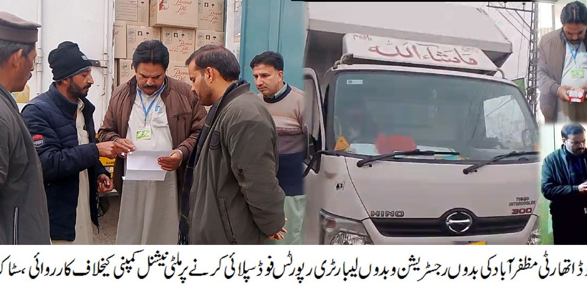 مظفرآباد(ڈیلی پرل ویو) آزاد جموں و کشمیر فوڈ اتھارٹی مظفرآباد نے بدوں رجسٹریشن اور بدوں لیبارٹری رپورٹس فوڈ سپلائی کرنے پر ایک ملٹی نیشنل کمپنی کے خلاف کارروائی کرتے ہوئے اس کا سٹاک ضبط کر لیا۔ تفصیلات کے مطابق اسسٹنٹ فوڈ سیفٹی آفیسر قاضی شفیق الرحمن نے ہمراہ ٹیم سید محب علی نقوی برارکوٹ انٹری پوائنٹ پر ناکہ لگا کر شہر میں داخل ہونے والی فوڈ سپلائی گاڑیوں کا تفصیلی معائنہ کیا، اس دوران ایک ملٹی نیشنل کمپنی کی گاڑی کو روکا گیا جو بغیر لائسنس، بغیر اجازت نامہ اور بغیر لیبارٹری رپورٹس اندرونِ شہر فوڈ سپلائی کر رہی تھی، ٹیم نے ڈرائیور سے فوڈ اتھارٹی کا لائسنس اور اجازت نامہ طلب کیا جو پیش نہ کیا جا سکا جس پر قواعد و ضوابط کے تحت متعلقہ سٹاک ضبط کر لیا گیا۔ دوسری کارروائی میں پلیٹ میں قائم ایک وئیر ہاؤس کا معائنہ کیا گیا جہاں غیر رجسٹرڈ اشیائے خوردونوش پائی گئیں جن کے قواعد کے مطابق نمونہ جات حاصل کر کے مزید جانچ کے لیے بھجوا دیے گئے۔ اس موقع پر ڈسٹرکٹ فوڈ کنٹرولر مظفرآباد ابرار احمد میر نے کہا کہ آزاد جموں و کشمیر فوڈ اتھارٹی ایکٹ 2017 اور پیور فوڈ ریگولیشنز 2019 کے تحت آزاد کشمیر میں بدوں لائسنس و اجازت نامہ فوڈ بزنس کی اجازت نہیں جبکہ بدوں لیبارٹری رپورٹس اور متعلقہ اجازت نامہ بیرون اضلاع سے آزاد کشمیر میں اشیائے خوردونوش کی ترسیل اور فروخت قانوناً جرم ہے، انہوں نے واضح کیا کہ فوڈ اتھارٹی قوانین کی خلاف ورزی کرنے والوں کے خلاف بلاامتیاز کارروائیاں جاری رکھے ہوئے ہے اور شہری غیر معیاری یا مشتبہ خوراک سے متعلق شکایات فوڈ اتھارٹی ہیلپ لائن 1280 پر درج کروا سکتے ہیں۔