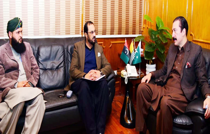 مظفرآباد(ڈیلی پرل ویو)وزیراعظم آزاد حکومت ریاست جموں و کشمیر فیصل ممتاز راٹھور سے چیئرمین علماء و مشائخ کونسل صاحبزادہ ذوالفقار علی اور وائس چیئرمین علما و مشائخ کونسل پروفیسر داؤد نقشبندی نے ملاقات کی۔