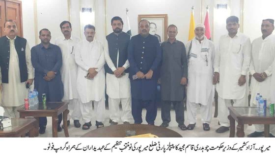 وزیر امورمنگلا ڈیم چوہدری قاسم مجید کی پیپلز پارٹی ضلع میرپور کی نو منتخب تنظیم کے عہدیداران سے ملاقات